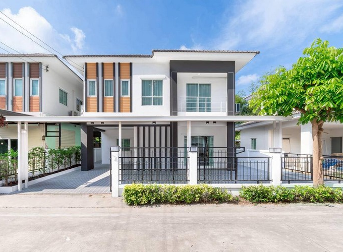 A two-story detached House in a contemporary style situated in Pattaya, nestled within a tranquil and secure development, in proximity to Tara International School